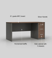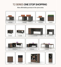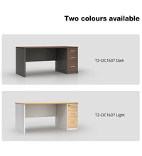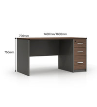Elevate your workspace with the refined elegance and practicality of our 140 cm Executive Office Desk. Designed to perfectly complement our dark walnut 5-door storage cabinet, this desk blends a rich woodgrain finish with a modern graphite grey structure, offering a cohesive and professional aesthetic for any office environment.